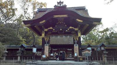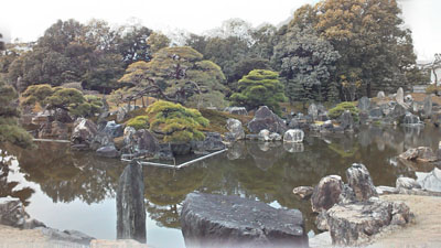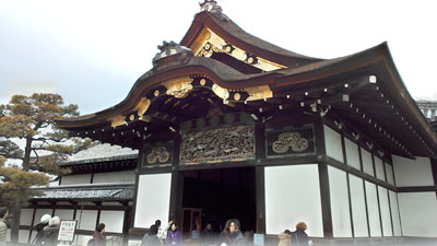 陽明門、良かった(*´▽`) 室内は意外とちっさいとか狭いとか思ってたんですが、説明によると千坪で、一周450mなんだそうです。 つまり、キャラメル一個じゃ足りない計算。←どんなだ 大政奉還をした部屋の実見は感動でした! これが教科書で見てた、あの!! 襖絵もだけど、欄間や天井も素敵(*´▽`) 私は桜と牡丹が好きでした(*´▽`) 特に牡丹の茎の部分の、ほんのり赤みを帯びているのとかいいですよね! お庭も素敵だし、障子開けてて欲しかったけど、絵の保護上無理なのか・・・。 ![]() 老中控えの間の水鳥なんて、これでもかと青い顔料使ってるんですよ。 この当時の青は確か、ラピスラズリを砕いて作った岩絵の具だったはず。 めっちゃお高いわ!! 鶴や水鳥には白い絵の具も使われているんですが、確かこれも、非常にお高い顔料だって聞いた気がする。 襖の姿をした宝石か・・・! 二の丸御殿を出たら本丸御殿にも行ってきましたよ! ![]() 中には入れないけど、華やかな二の丸御殿に比べて質実剛健な感じ。 ここに至るまで、ちゃんと桝形もあったりして、防御力あるじゃん・・・。 天守跡もあったし、戦う気満々じゃん・・・。 誰だ、御所に遠慮して、ただの館にした城だって言ったの。 中学か高校の歴史の先生だったと思うけど、今なら言える。 嘘つけ、この素人が!! 城に入る時も、おじさんが『ここは豊臣秀吉のー』なんて言ってたけど、ここは徳川家康の宿所だから・・・! 秀吉の二条第は別の場所だよな! 今年、大政奉還150年だそうで、あちこちにポスターもありましたよ。 うっかり、『できて150年??いや、できたの、1600年代だろ??』なんて言ってた。 大政奉還だってば、ちゃんと見て、私・・・; 二条城を出たら、バスで北野天満宮ですよ! 二条城出るまでは降ってなかったのに、ちょっと雨がパラパラして来た。 でも、参道から兄者のいる宝物殿まではそんなに降ってなかったんで、無事に写真撮れました。