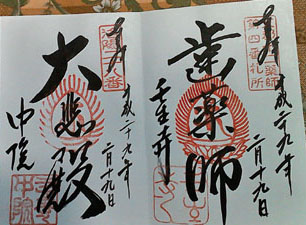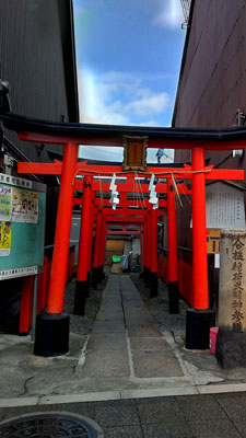 ここには、鍛刀がご趣味だった明治天皇の碑があります。 ・・・明治の刀狩(笑) そろそろ、御物の全国行脚してくれないかなぁ・・・! 神社を出て、三条通を渡ってすぐの所に、小狐由縁の相槌稲荷がありますよ! ![]() 当然、お参りです。 ここは民家の間を通って行くので、お静かに。 お供え物も遠慮してください、だそうです。 三条通を戻って、いざ!本能寺へ!! ・・・って、なんか刀ステの鈴宗様の声で再生されたんだがwww そんで、かいんさんが『出陣だ!』とか言い出すんですがどうしたらwwww 市役所前で降りて、アーケードをくぐったらすぐ、本能寺ですよ。 ![]() ![]() 提灯の紋がかわいい(笑) 不動と薬研が並んでるんですが、横に忍者姿のスタッフさんがいて、案内とか写真撮ってくれたりする(笑) なんで忍者wwww