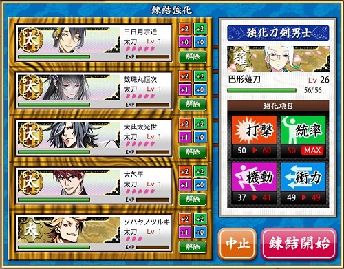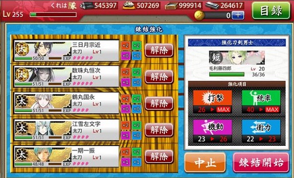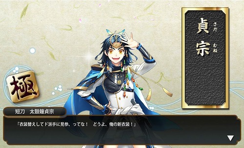 | 極と鍛刀W実装(笑) 今日は貞ちゃん極だけだと思ってたから、ログインして驚いた・・・。 ともあれ、まずは貞ちゃんを修行に出しますよ!