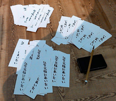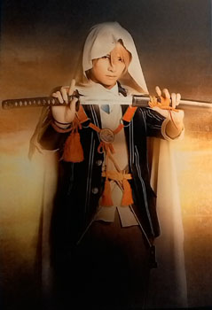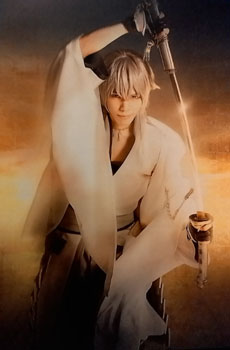 ちょっとライトの具合、考えて・・・! 上の電灯の傘が思いっきり写り込んでるんですけど・・・! 影(試し打ち)なので、うちのけなんかは見えませんね・・・。 真打ちになったら、刃文がきれいに見えるようになるのかな。 これのポストカードもほしいな・・・! そして舞台ですよ!