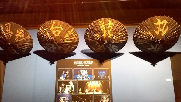 暁の傘、もうヤバない?!ヤバない?!ヤバない?! 福岡公演の時に置いて帰ったのかな!! 伊達四振!!!! パネルもあって、テンションMAXですよ!! めっちゃやばい!!! 花丸本丸もありましたよ!