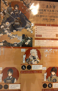 | 最近あまりにも暑いので、命の危険を感じたらすぐに電車に乗り換える、と自分と約束してから、自転車でちゃりちゃり。 まだ午前中だったので、割と安全に天神に着きました。 ・・・帰りに死にそうになったけどな; ・・・日焼けしたー;;;;;;; ともあれ、本丸博ですよ! まずはスタンプラリー、始めよう! ![]() パルコ8階でシートを買って、パルコとソラリアステージ、ソラリアプラザをめぐりますよ。 プラザはパターンが決まってたので、上に行くほど予想がつきやすくなるんですが、パルコ7階がな・・・! ここ、パルコか?! 隣ビルじゃねーの?!って場所にあって、ちょいイラッとした。 パルコを制したら、ステージの地下でお昼ごはん。 その間にステージの場所を確認して、食べ終わったら制覇。 プラザに移動して、プラザ制覇からの・・・本丸博開催のステージに戻る。 ・・・うん。 パルコ→プラザ→ステージが効率良かった。 ともあれ、本丸博ですよ! ![]() 整理番号順に並んで、50人ずつ順番に入れてもらえます。 私は89番だったので、14:08に入れてもらいました。 待っている間に、特典のミニファイルも配ってくれて、スタッフさんすごく効率いい。 審神者も訓練されていて、中に入っても一切混乱はありませんでした。 ベビーカーの人も二人いたけど、ぜんぜん大丈夫だったよ。 入ってすぐのところで、スタッフさんが注意事項を言ってくれて、刀剣OP動画なんか見た後、幕を引いてくれたらきらびやかな襖絵!! 歓声上がりますよねそりゃ!! テンション上がりますよねそりゃ!!