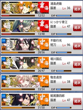 | 昨夜は5時位まで起きてたんですが、全然台風の来る気配なく。 監視していたわけではなく、単に眠れなかっただけですw 刀剣ネタバレサイトの初心者向け記事全部読んで、ようやくシステム理解した。←審神者2年以上・Lv261www 雨戸閉めていたんで、部屋が真っ暗過ぎて結局、14時位に起きたら終わってました。 念のため、1時間位様子見てから雨戸開けたけど、自宅付近は特に被害はなかったようだ。 ・・・いや。 雨戸を閉めたまま、うっかりカレーヌードル食べてしまったんで、部屋はカレー臭くなった(笑) そんな中、いつもながら刀剣をやっていたんですが、絶賛砥石枯渇中なもんだから、手入れもできなくてな・・・。 中傷になっても巡回していたら、部隊がこんなことになりましたよwww ![]() 正しくブラック本丸(笑) 浦島に、『過酷な労働環境、はんたーい!』言われたwwwwすまんwwww 遠征で資材確保して、なんとか全員、手入れしましたけど、怪我できないからイベント場の市中演習しか巡回できない・・・。 まぁ、江戸城プレイランドでガンガン遊んでたのがいけないんで、仕方ないんですけどね。 今、鍛刀キャンペーン来たらほんと死ぬ。 しかし今日の演練で、カンスト浦島いたのは驚いたぜ・・・! うちなんて、最初に行った骨喰がようやく48だよ;;; 驚きすぎて、思わず二度見した。 どんなレベリングしてるんだ・・・。 噂では、初期刀5の極がそろそろ来そうだってことなんで、楽しみですね。 むっちゃんが銃兵を装備できるようになったら、プレイランド巡回が楽になりそうだな。 ってか、敵兵は短刀以外も銃兵装備してるんだから、こっちも装備させろよ### ところでやってる間、青春鉄道のミュージカル見ていたんですが、滝川さんが出てくる度に『怪我大丈夫かなぁ・・・』って気になって気になって・・・。 全身強打で重傷とか、今後の舞台どうなるんだよ・・・! 刀ステの山伏か日本号には滝川さんが来ると思ってたのに・・・! ・・・それにしても、舞台俳優とか宝塚女優がニュースになる度に『知らんわwww』とか言う人、無料で垂れ流してる有名()俳優と違って、基本的にお金を払わなきゃ見られない人のことをなに揶揄ってんの?って思いますわ。 『自分、金と教養ないです』って晒して嬉しい? たしかに、地域によって舞台を見られるかってのは大きいと思うよ。 福岡市なんて、演芸が身近で当たり前、自分も家族も親戚も友達も、何か習い事をしてて、親戚や学校の先輩後輩クラスメートに芸能人いるわ、な地域は特殊だとは思うが。 知らないことは恥じゃないが、自慢でもないだろ。 自身の恥をわざわざ晒すな。見苦しい。 そんな本日のせるひは藤四郎兄弟。