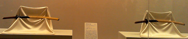 『こちらこそありがとうございます』と言って頂いて、一緒に写真撮ってもらいました(笑) 撮影会終わったら、黒田の甲冑と刀剣展に行ってきました。 ここでは、長谷部の鞘(左側)と、そのオリジナル、安宅切の鞘が並んでいるんですよ! この展示会出たら、長谷部の方が空き始めてたんで、ついでに観てきた。