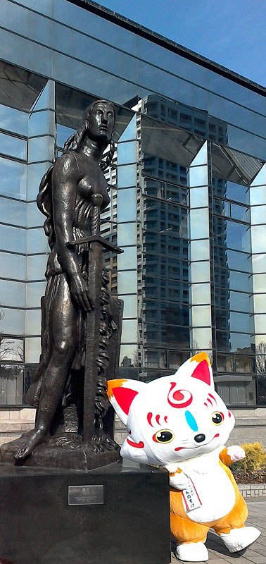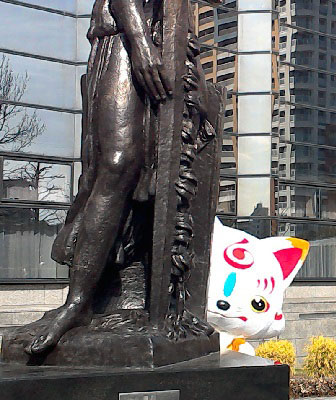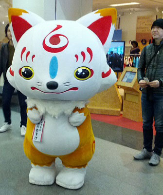 | 今日は福岡市博物館におっきいこんのすけが来るよ!! ってことで、行ってきました! ・・・とは言え、持病の薬がなくなったので、先に病院に行かなきゃだったんですけど。 9時に行ったから、11時からの回に間に合うかと思ったんですが、患者が多かったのと採血もあって、間に合いませんでした・・・。 13時半からの2回めを目指して、先にお昼ごはん。 貧血なのに、貧血の検査のために血を抜かれる、なんて可哀想な目にあったので、しっかり食べてきました。>ちなみに、婦長は私好みの注射器をちゃんと用意してくれてました(笑) お昼は担々麺だけど、私の好みからはあとひと味足りない・・・。 お気に入りの店がなくなったのが痛い・・・。 ともあれ、ご飯食べ終わって市博に行ったら、長谷部の展示場はすごい列だ。 まぁ、今日は見なくていいし、と思って、先にロビーのパネル撮りますよ。