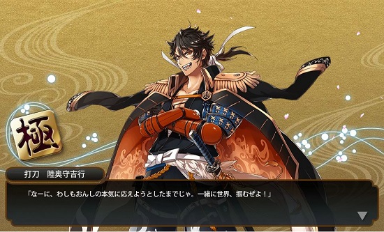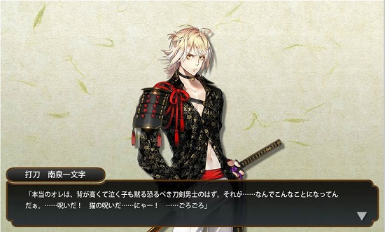 新刀剣男士のビジュアル来ましたね!一文字派キタコレ!! 一番凹んでた時にチラ見せ来てたんで、全然予想とか見てなかったんですが、今回も特定班が南泉一文字だと的中させたそうで(笑) あいかわらずすごいな、スキル(笑) なんであのチラ見せでわかるんだよ(笑)←大般若当てた人。 ・・・いや、あれは皆わかってたから、簡単な部類だったよ。毛利も。 猫の呪いとか言いながら、『にゃあ』って語尾とかお前、萌えるだろうが!! 明日で静鍛刀CPが終わって、おそらく江戸城が来るので、宝箱は1回お代わりで、二振り入手しておくか。 にゃんこ捕獲するぜ! にゃんせんに続いて、姫鶴も来ていいんだよ!! 日光一文字も来い!国宝だよ!! 日光一文字が顕現したら、市博に刀剣男士が三振りってことに! 潤え、市博! 潤沢になった資金で、城井兼光再展示!!← ちなみに、福岡一文字派は今の福岡県福岡市に住んでいた一派ではなく、岡山県の福岡に住んでた一派な。 筑前住は左文字です。 そもそも福岡県の地名は、黒田官兵衛が先祖の住んでた土地の名前を勝手につけたんであって、ここは博多な!! ・・・だから、博多で黒田は嫌われてんだよ。 我が家は黒田についてきた家計なのに、私自身は生粋の博多っ子だから、微妙な立場・・・。 如水さんには先祖代々お世話になってるし、でも、博多っ子なんで『なんで勝手によその土地の名前つけるんだ』とも思うし。 とても微妙ですな。 |