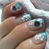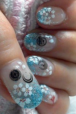 | 市販のネイルシールと、自作の刀剣紋シールを持って、ネイルサロン行ってきました! さすがネイリストさん、見事に配置してくれましたよ!