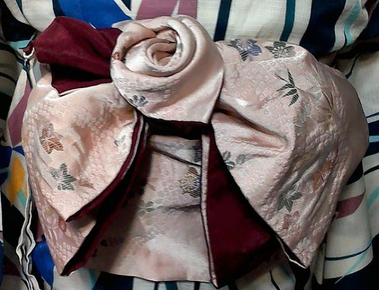 しっかり寝て、起きてからは浴衣用の歌仙モデル帯型作ってました!![]() 袋帯じゃないから、色々制限はあったけど、なんの道具も使わずにここまでできたぜ! あ、輪ゴムは使った。 ちゃんと見えないようにしているけど(笑) 考え考えやっていたので2時間位かかったけど、形が出来上がったので次回は時短できる。 以下、自分用メモ。 手は手幅3つ半、手先に手幅一つ半のバイヤス襞。垂れ先にもバイヤス襞。短め。 結んだ手先を肩に預け、垂れ元から屏風だたみ、垂れ先のバイヤス襞が裏面になるように配置してから結ぶ。 結び目の下から手先を出して花を作る。 形を整えて完成。 よし。 着ていくのはこちら! ![]() まんばちゃんのジャージ色の帯wwww 着物は単衣ですね。 暑そうなので、襦袢なんかは夏物にします。 帯揚げが山吹色で、帯締めは黄色と白の羅にしました。 雨が振ったら、駅までママンに送ってもらう(笑) 5/3が楽しみです! あ、にゃんせんは歌仙作っている間にカンストしました。 リングマウス便利。 |