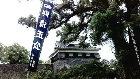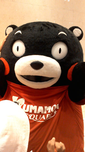 さぁて帰るよー・・・って出たら、大雨・・・。 最後の最後で降りおった・・・; 通町筋まで戻って、バス停に行こうとしたら、くまモンと行き合う(笑) ![]() まったねー |