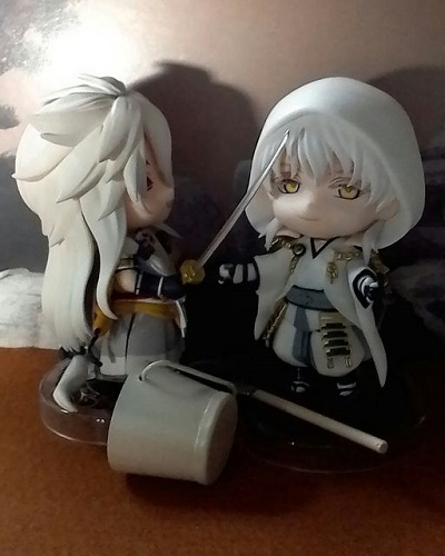 | 昨夜、『とりあえずパーツをケースに入れちゃおう』って、貞ちゃんの箱開けたのですよ。 けど、貞ちゃんのパーツの細かいこと!! スタンド差しこむのにパーツ分解しなきゃだし、結構難易度高いぞこれ・・・! 個人的に、貞ちゃんの髪のパーツの多さがツボでした(笑) このツンツン頭は難しいよな。 続いてみっちゃんを開けたんですが、貞ちゃんの難易度に比べて、みっちゃん簡単でありがたかったよ。 というわけで、二人の顕現を祝って撮影会ですよ!