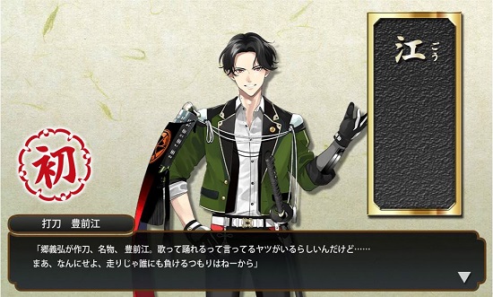 | 昨夜、録画見ながらぼーっとポチポチやっていたら、突然喋りだして驚いた・・・。 いつの間にか10万行って、豊前江ゲットです。 ![]() 早速回想と、結構時間かかったけど真剣ゲットしてつつきまくりましたけど・・・きたきゅうべんwwwwww そうか、小倉藩小笠原家かwwww 博多も小笠原家だけど、二人の方言は微妙に違うこと、わかってほしい。 豊前は北九州弁、博多は、ヘッタクソだけど博多弁な。 博多が『ちゃーちゃーうるさかっちゃが!!』ってキレそうwww いや、それ以上に、長谷部が『きさん、絡みよったらマジくらさるーけん』(お前、絡んできたらマジで殴るぞ)って、低い声で牽制しそう(笑) 回想も、1ってことは2があるのかよ(笑) 桑名が来るのは確実っぽいけど、五月雨とか、どんどん増えていくつもりなんだろうか(笑) 篭手切もだいぶアレだな・・・。 そんなこんなで、特付きましたよ。 ![]() よしよし、連結祭を開催するぞ。 太刀が全然落ちてこないので、短刀と脇差を食べさせたけど・・・あれ? 機動、長義と同じ53で、54の南泉にも負けてるじゃないか・・・。 速さ推しとは、一体・・・。 そして57でぶっちぎる長谷部。 こいつ・・・短刀より速いんだぜ・・・・・・!(震え声) そして内番服もゲット。 ![]() 篭手切ってこんなんだっけ、って思ったら、ジャージ脱いでるだけか。 ともあれ、今日もママンは嵐のコンサートだったんですけど、アリーナ席だったらしい。 いかに松潤がカッコよくて翔くんと大ちゃんがイケメンかと熱く語られた・・・。 今年分の運を使い果たした!って、12ヶ月分ためてたのかw よかったですねー。>興味なしwww |