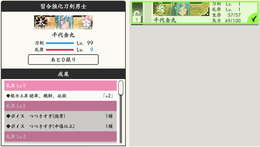 早く乱舞レベル解放してもらわないと、今、白山70振り以上いる・・・。