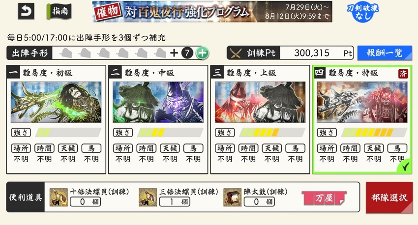 そんな本日のとうらぶさんは、強化プログラムの報酬が終わったら、自然回復以外遠征とちょっとした周回しかできない・・・。