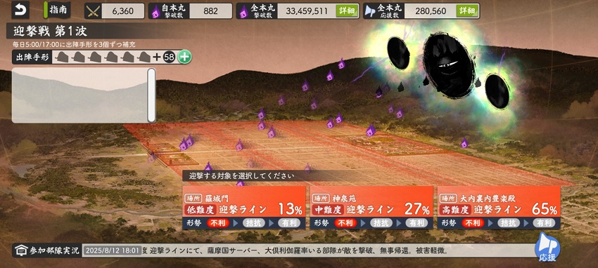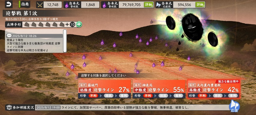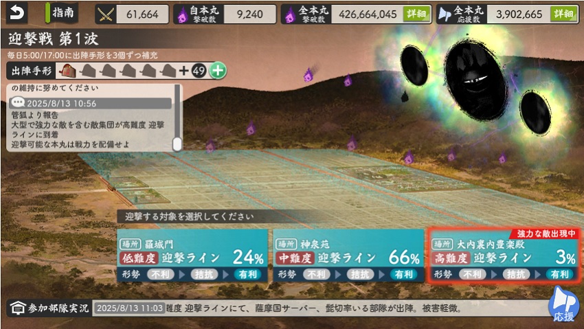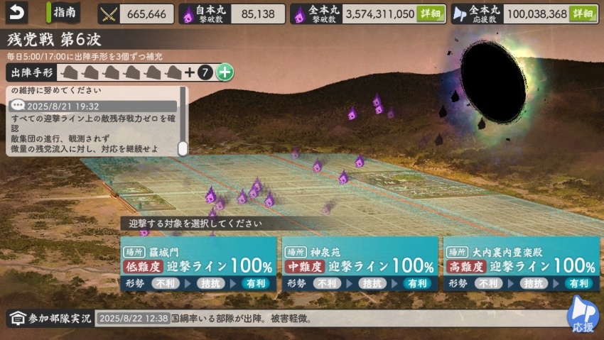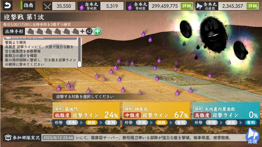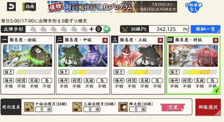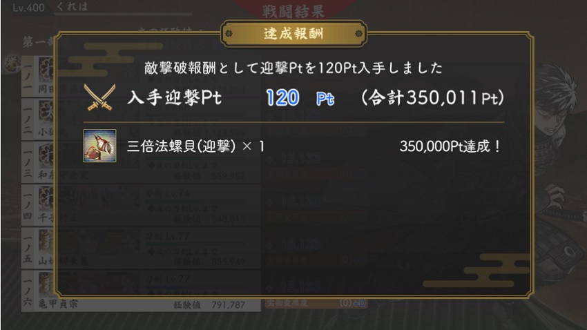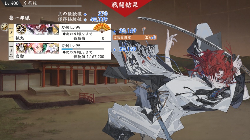 大阪城はカンスト極で攻めるけど、その前にドロップ率2倍で阿弥陀ヶ峰周回したら全員カンストしてしまう。