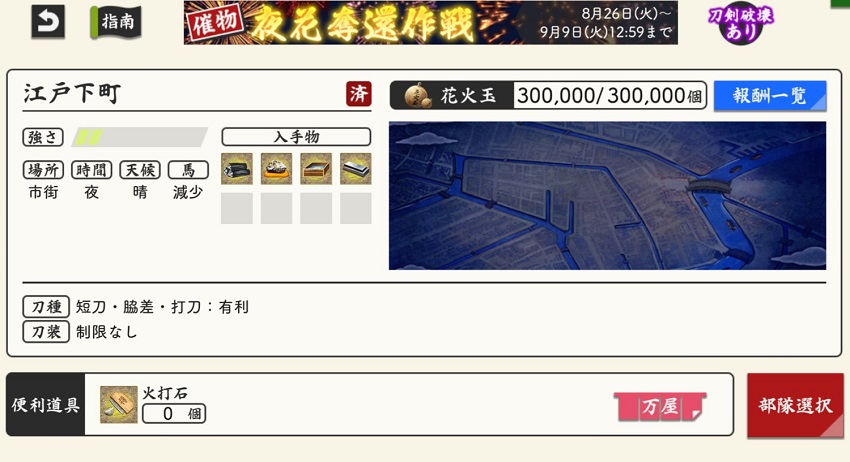 そんな本日のとうらぶさんは、夜花延々と周回中。