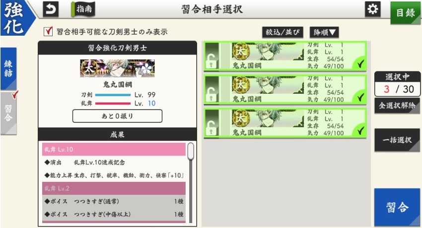 大阪城は粟田口、鬼いちゃん以外の全振り乱舞レベル10に。