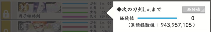 あと何日か繰り返せばいいだろ、って思ってたんですが、『次の刀剣Lvまで経験値0』って書いてあれば開花するよね。
