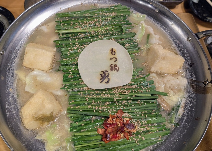 揚げだし豆腐の中にゆずごしょうが入ってて、スープに溶かしながら食べるんですけど、スープ自体がおいしいし、モツもプリプリしてて甘くておいしかった!!