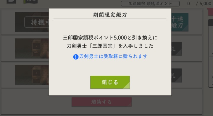 明日は桑名と松井が極めるし、多分、里が来るので、さくっと終わらせて小判は節約しようね。
