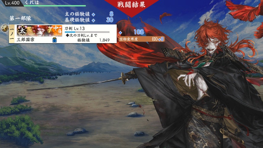 そんな本日のとうらぶさんは、ようやく気力管理しなくていい部隊になったのに、厚樫山で全員中傷になってしまうなぁ・・・。