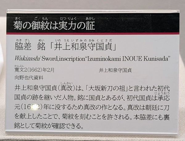 今日は朝から内科に行ってお薬をもらい、眼科でコンタクトの度数を調整して目薬もらいに行ったら処方薬局が昼休みだったので、整骨院に行く前に市博に行って、下諏訪さんに教えてもらった井上和ひ・・・和泉守国貞見てきました!!