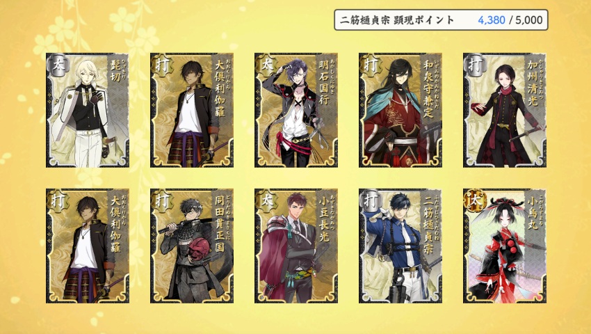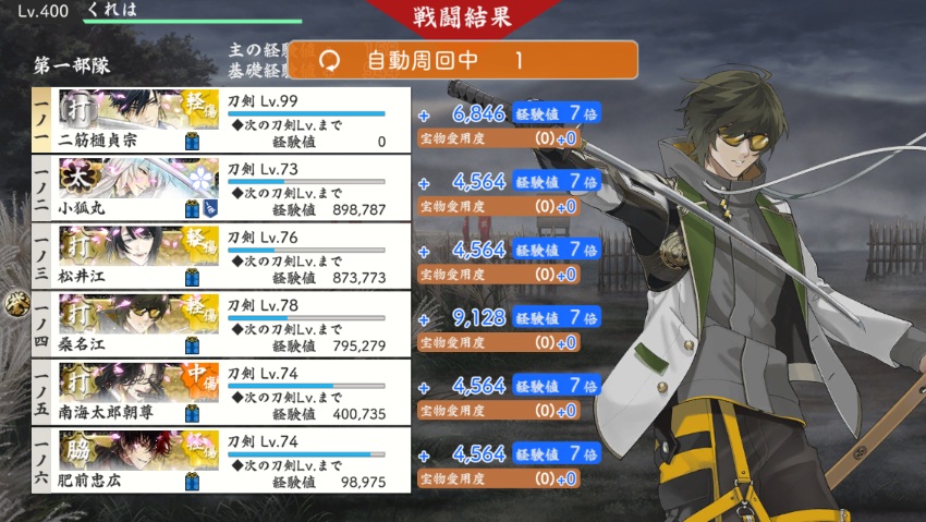 ■検非違使ドロップ:源氏兄弟だけでなく、他の入手が難しい男士もドロップするようにしてほしい。