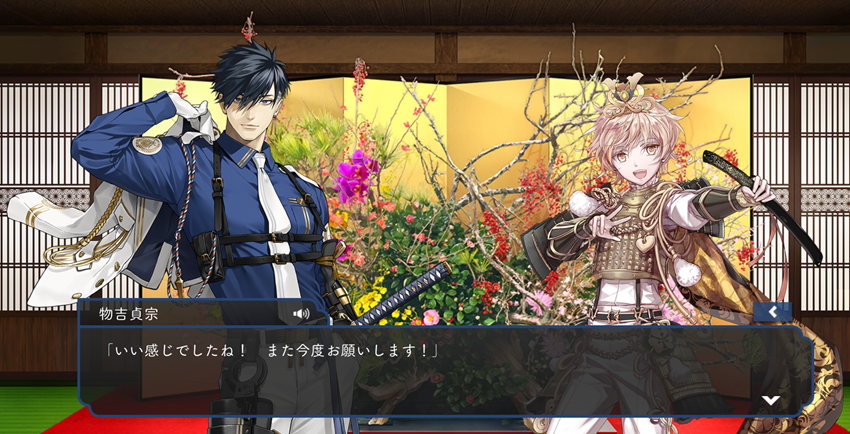 そんな本日のとうらぶさんは、お正月演出が始まったので、去年極めた男士と新刃から挨拶もらいました!
