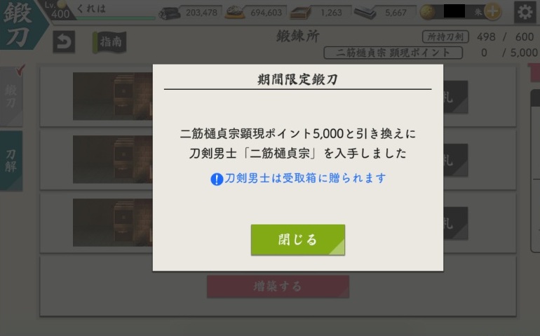 そんな本日のとうらぶさんは、道誉チャレンジ失敗・・・。