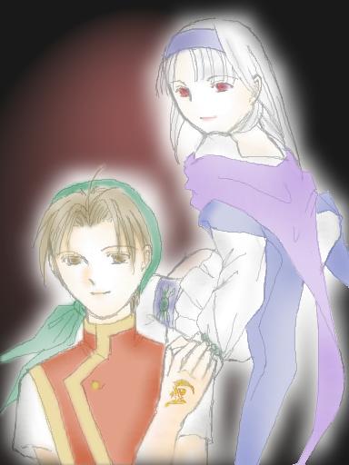 | お題75 『闇』ですv 異色ペアですか(笑) これも、『祖国の為に』を書いていて思いつきました。 どこが、って、『この世で最もネガティブな紋章を継いだ少年のポジティブな言い様』ってとこなんですが(笑) ネガティブ紋章のナンバーワンとツーですよね、この二人(笑) どっちが1位かはまぁ、それぞれのご判断に任せます。 一度強制終了されて、気に入ってた坊ちゃんを消され、シエラがブスになってしまいました;;; ちくしょー!!リベンジしたる!!(涙) |