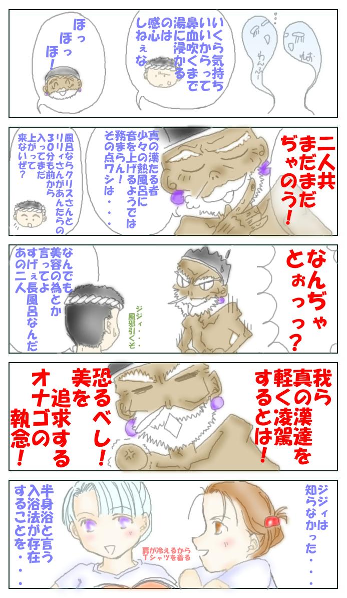これは、『漢風呂』と半身浴にはまった(?)事をきっかけに思いついたネタなんですが、まさか、こんなにジジィの半裸を描く事になるとは思ってませんでした(笑)